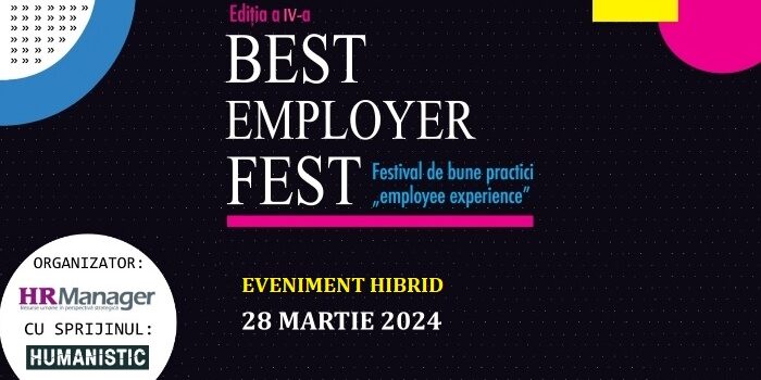 Revista HR Manager, cu sprijinul Humanistic, organizează o nouă ediție BEST EMPLOYER FEST, pe 28 martie 2024, eveniment ce se va desfășura în format hibrid: in-person, la Hotel Capital Plaza și online.